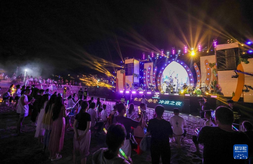 10月17日至19日,浙江舟山朱家尖举办东海音乐营冲浪之夜活动,不同风格的乐队轮番登场,拉开了当地金秋文旅特色活动的序幕。东海音乐营是舟山朱家尖海岛特色旅游季的主打品牌,通过组织各类沙滩音乐会,助力打造舟山海上音乐之城,推动特色文旅消费市场的发展。